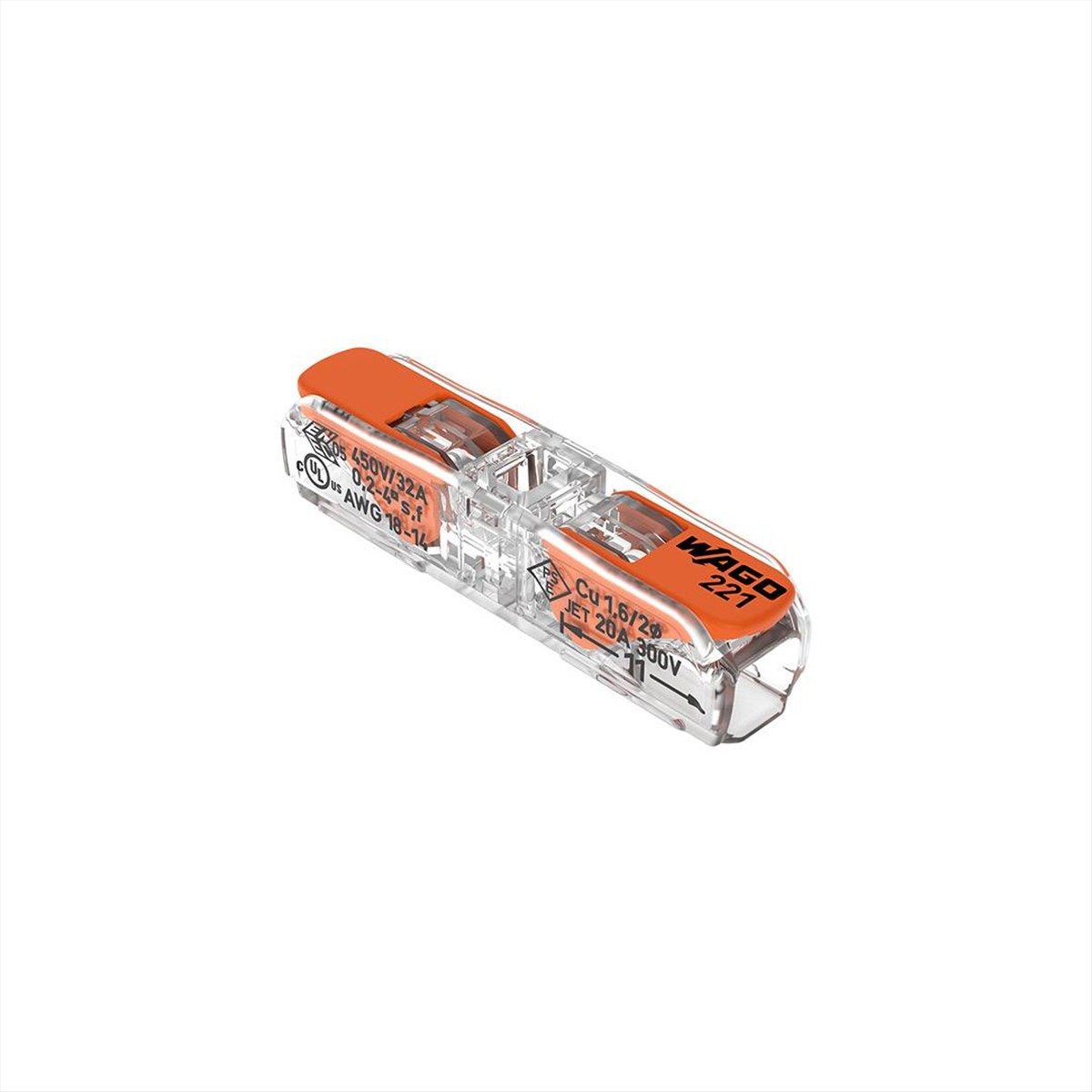 Το πρεσσαριστό συνδετικό WAGO 2 θέσεων σειράς 221 αποτελεί μια εξελιγμένη λύση για ευθείες συνδέσεις καλωδίων έως 4mm², ιδανική για γρήγορες και ασφαλείς ηλεκτρικές εγκαταστάσεις. Είναι κατασκευασμένο με διαφανές σώμα που επιτρέπει οπτικό έλεγχο της σωστής επαφής των αγωγών, προσφέροντας μέγιστη ασφάλεια και αξιοπιστία σε κάθε σύνδεση. Η τεχνολογία CAGE CLAMP® εξασφαλίζει σταθερή και χωρίς συντήρηση επαφή, χωρίς να απαιτείται προετοιμασία των αγωγών ή χρήση ακροδεκτών.