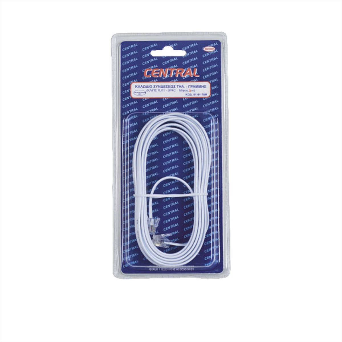Το καλώδιο τηλεφώνου RJ11 3Μ BLISTER Λευκό της CENTRAL είναι ιδανικό για αξιόπιστη σύνδεση τηλεφωνικών συσκευών σε οικιακούς ή επαγγελματικούς χώρους. Διαθέτει μανδύα PVC που εξασφαλίζει ανθεκτικότητα και προστασία από φθορές, ενώ οι τέσσερις πολύκλωνοι αγωγοί του προσφέρουν σταθερή μετάδοση σήματος. Κατασκευασμένο με προδιαγραφές ΟΤΕ και εξοπλισμένο με υποδοχές RJ11-6P4C, εγγυάται άριστη συμβατότητα με τις περισσότερες τηλεφωνικές συσκευές.